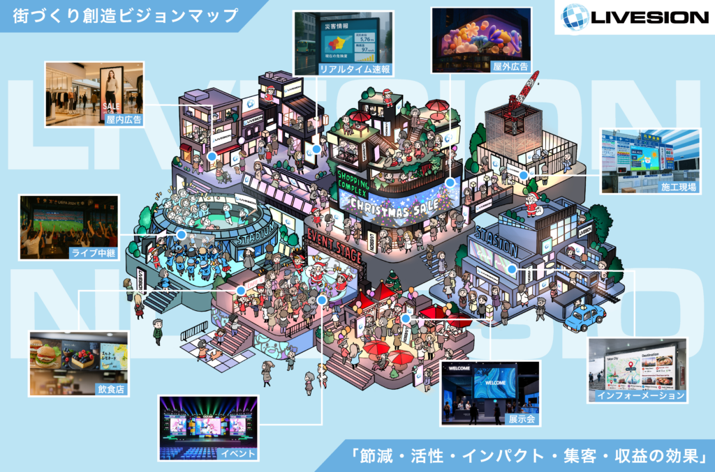 LIVESIONでは、この冬に向けて案内カタログを新たにアップデートしました。今回の冬バージョンでは、私たちが取り組む「街づくり創造ビジョンマップ」をはじめ、LEDビジョンが都市空間にもたらす価値や魅力を、より分かりやすく紹介しています。カタログ内... -