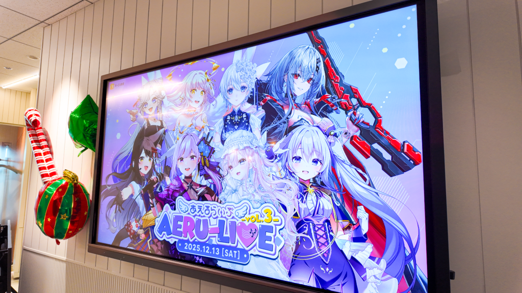 LEDビジョンを導入した個室ブース「AERU STATION」にて、等身大Vtuberとのリアルタイム対話を実現。