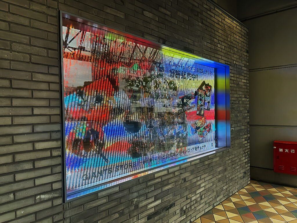 透過率70%により店内の開放感を損なわず、外側には高輝度映像が鮮明に表示され、来場者の視線を強力にキャッチ。