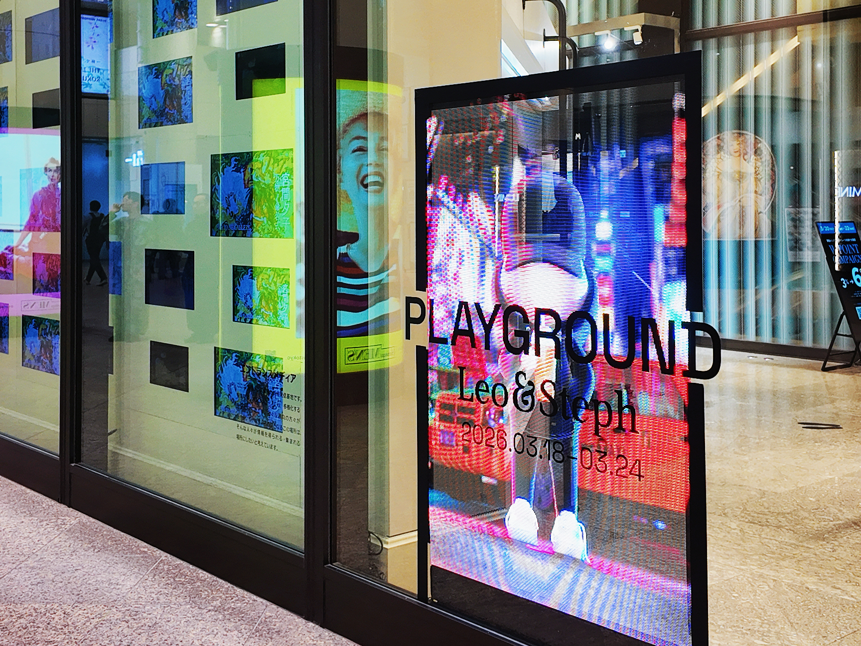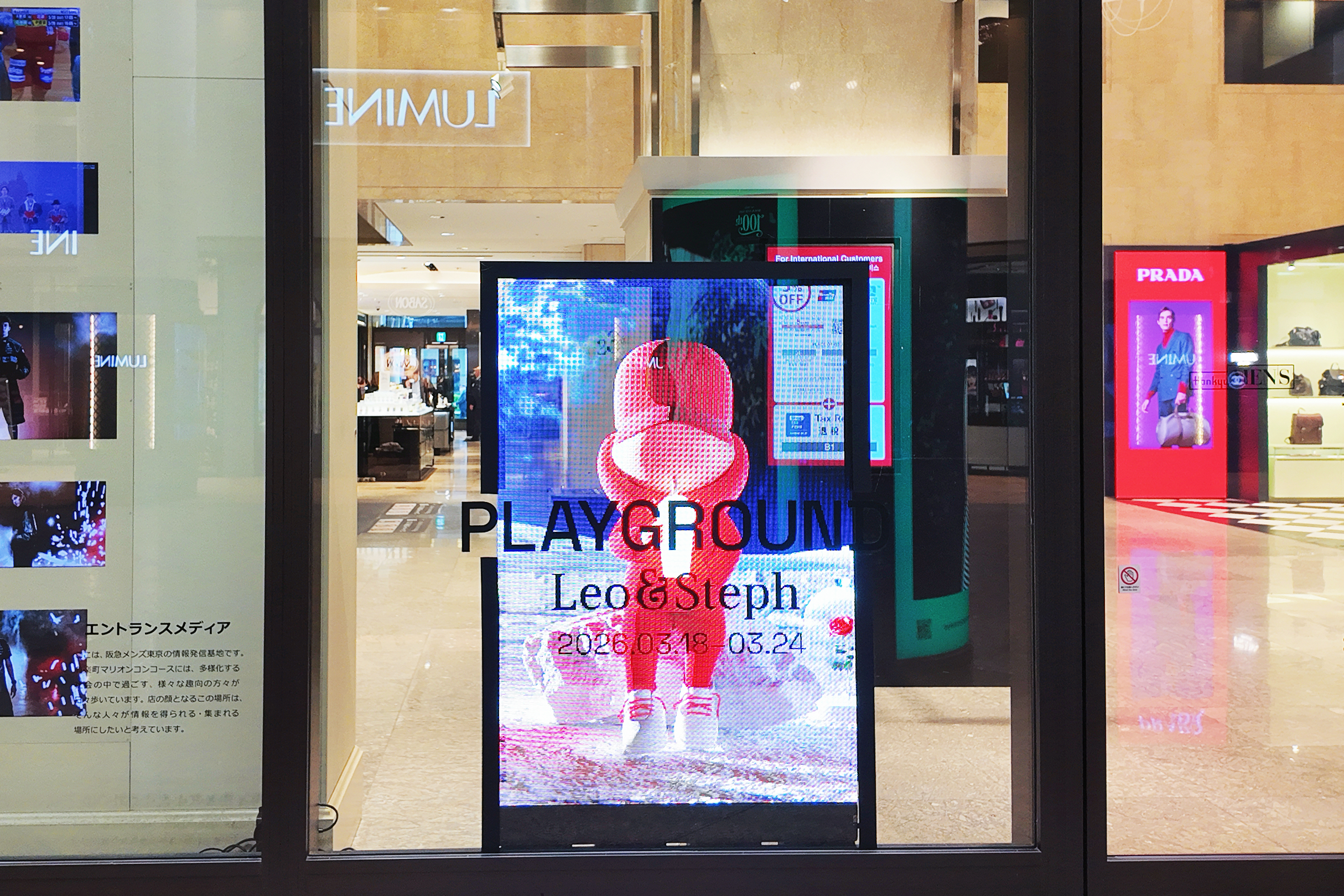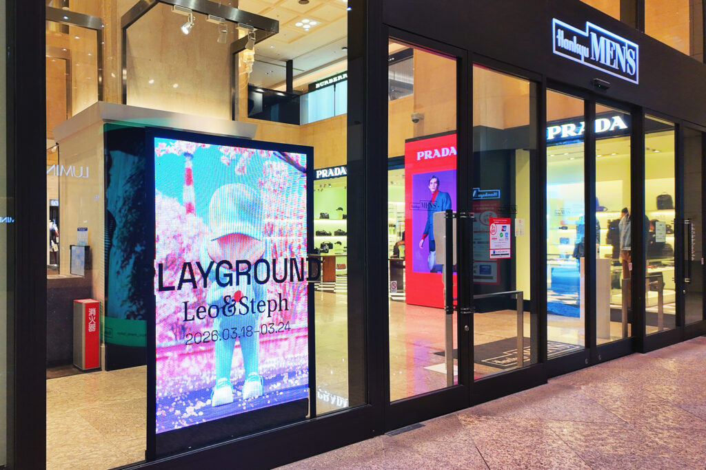 さらに、ガラス面への映像放映によって空間になじみながら高い視認性と訴求力を確保し、展示全体の演出力と話題性の向上にもつながりました。